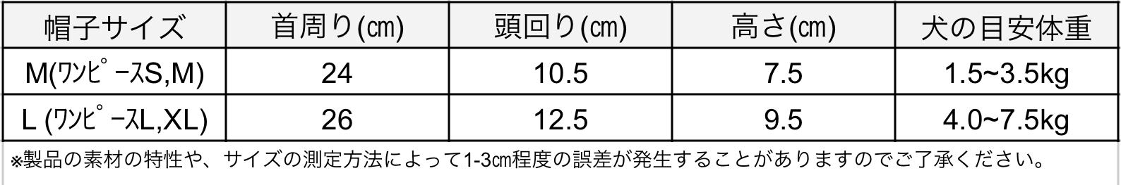 ワンピースのS、Mには帽子はMサイズ、ワンピースのL、XLには帽子はMサイズがセットになっています。