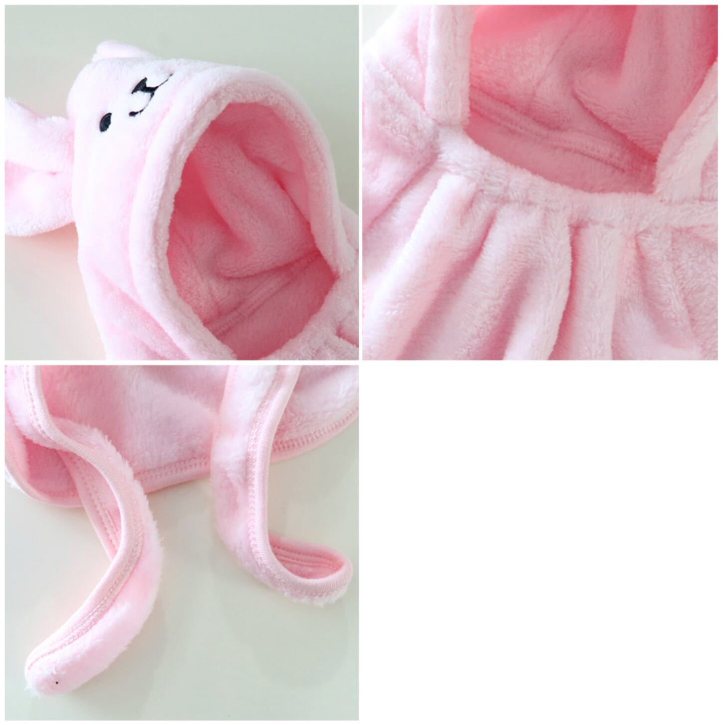 マイクロファイバー生地で作られており、一般的なタオルよりも2倍以上の吸水力と分厚く柔らかい手触りで心地よく使用していただけます。うさぎのフードデザインとお尻までの丈感で、お風呂・水遊び・体温調節などさまざまなシーンで活用することができるガウンです。