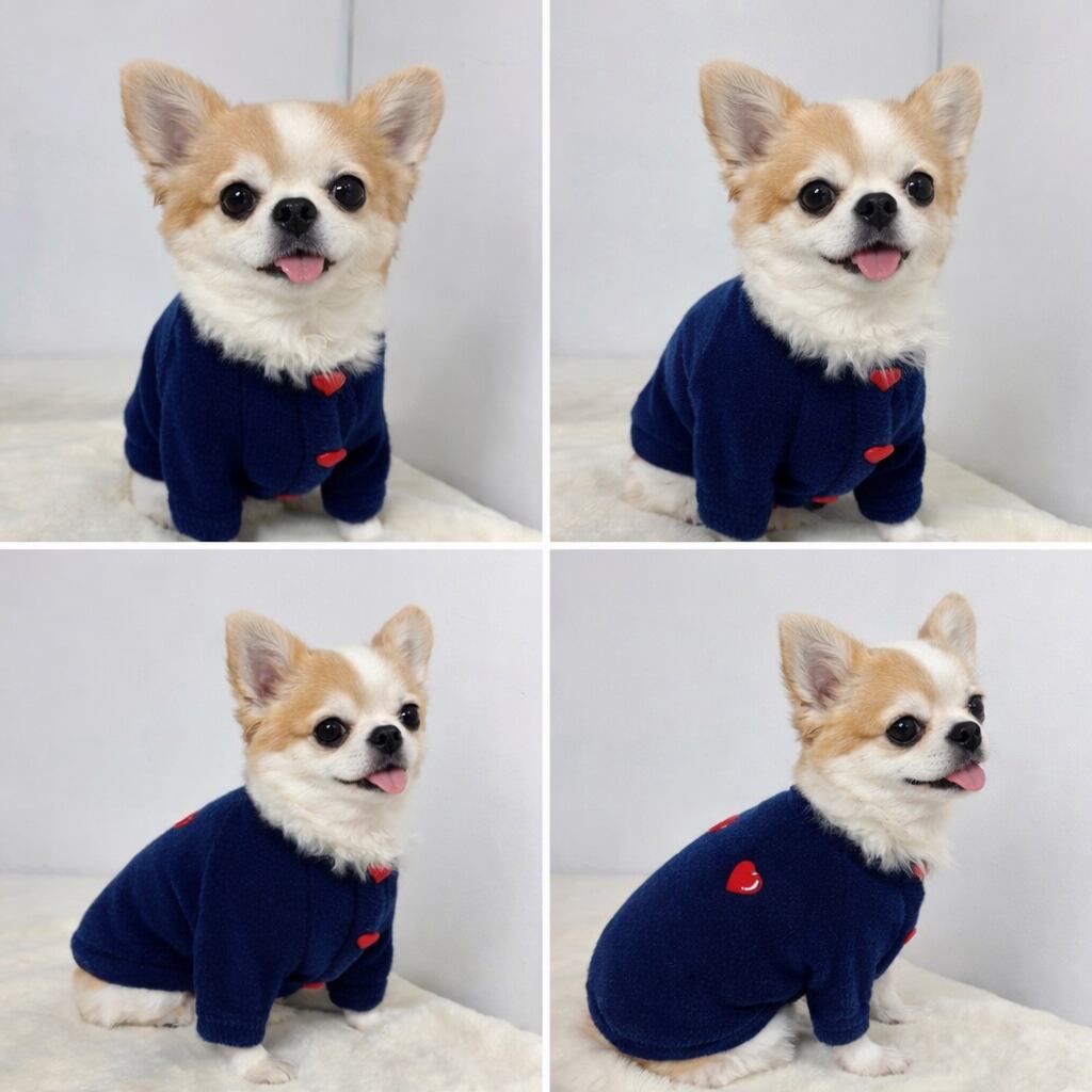 愛らしいハート柄がポイントの、アイボリーのカーディガン。