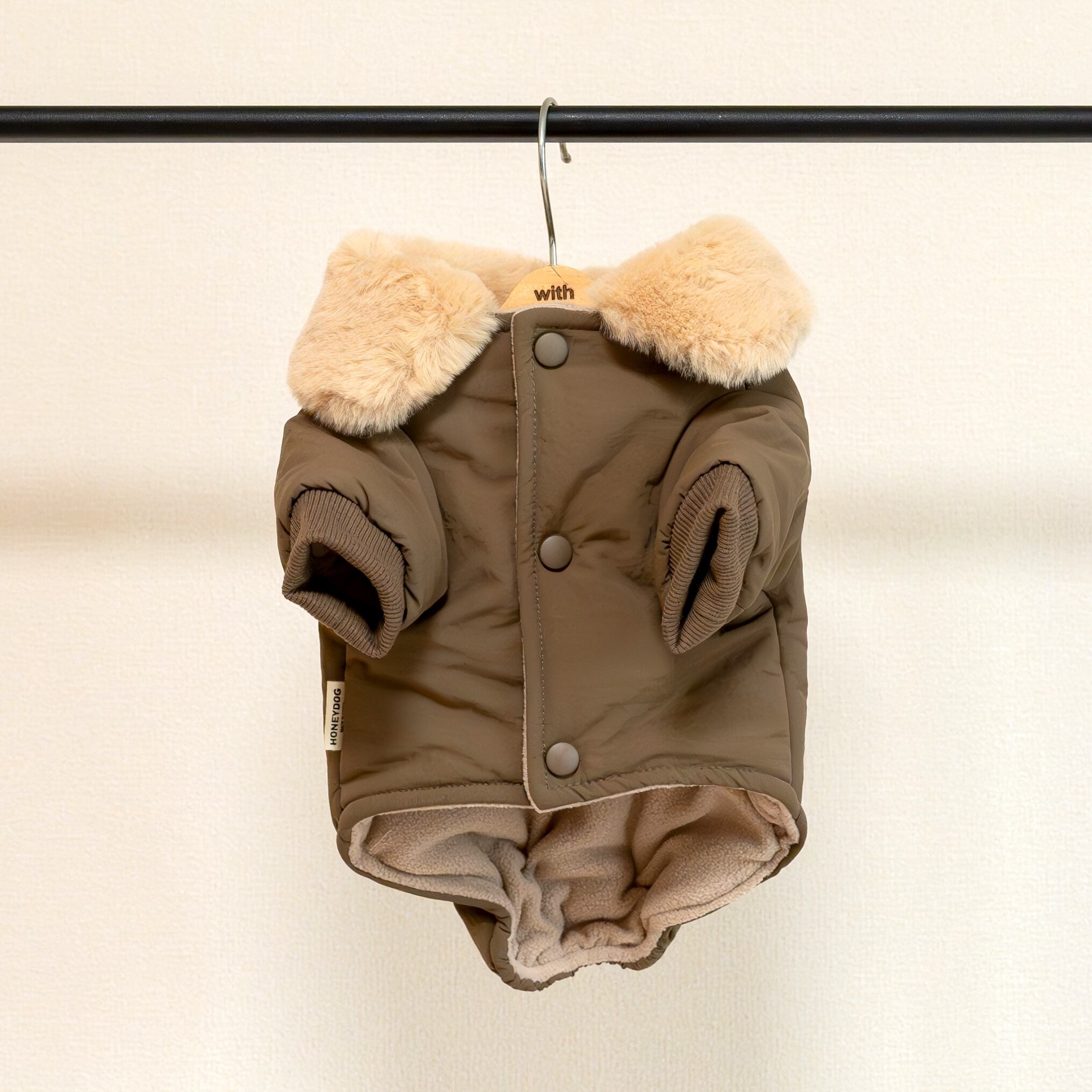 顔周りには柔らかく肌触りの良いファーがあしらわれており、スナップボタンで着脱がしやすいです。