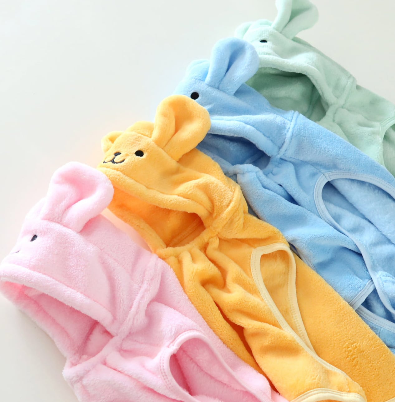 マイクロファイバー生地で作られており、一般的なタオルよりも2倍以上の吸水力と分厚く柔らかい手触りで心地よく使用していただけます。うさぎのフードデザインとお尻までの丈感で、お風呂・水遊び・体温調節などさまざまなシーンで活用することができるガウンです。